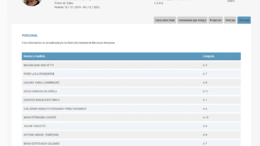La senadora que posee la mayor cantidad de personal a cargo es la chaqueña María Inés Pilatti Vergara, que posee 40 asesores en su despacho. Esta legisladora del Frente Nacional y Popular, que responde a Jorge Capitanich y muy cercana al kirchnerismo, tiene ocho asesores correspondientes a la categoría más alta: la A-1. Es decir, que solo estos suman $11.279.696 en salarios en bruto. Luego tiene otros 7 categoría A-2, con sueldos que rondan los $1.100.000 y otros dos empleados categoría A3, solo por nombrar a los primeros de la lista.