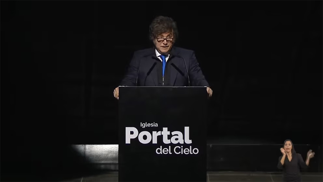 El presidente Javier Milei desembarcó este sábado en la ciudad de Resistencia, Chaco, para asistir al acto de cierre de un Congreso de Iglesias Evangélicas, en el “Portal del Cielo”, un megatemplo para más de 15.000 personas que se inauguró el jueves pasado. Desde allí, el mandatario dio un discurso en el que comenzó reparando en la importancia de la batalla cultural, como forma de combatir los “frentes más adversos”.