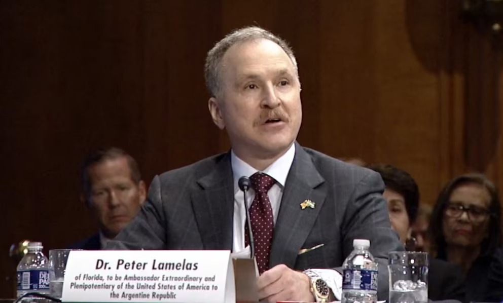 El embajador designado por Donald Trump para la Argentina, Peter Lamelas, se presentó este martes ante el Senado de Estados Unidos, donde elogió al presidente Javier Milei como un "amigo" y prometió una alianza "sin precedentes", al tiempo que lanzó una dura advertencia contra la "influencia maligna" de China en la región.