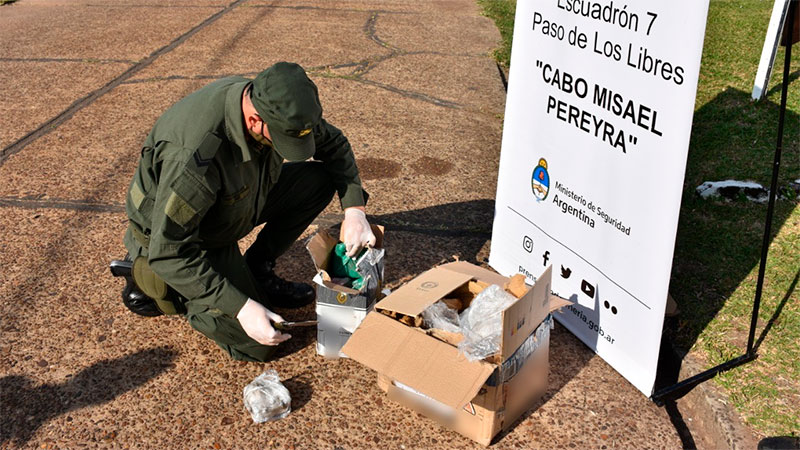 Efectivos de Gendarmería, dependientes del Escuadrón 7 Paso de Los Libres "Cabo Misael Pereyra", llevaron adelante la inspección de un envío postal sobre el kilómetro 363 de la Ruta Nacional 14, el pasado 24 de abril.