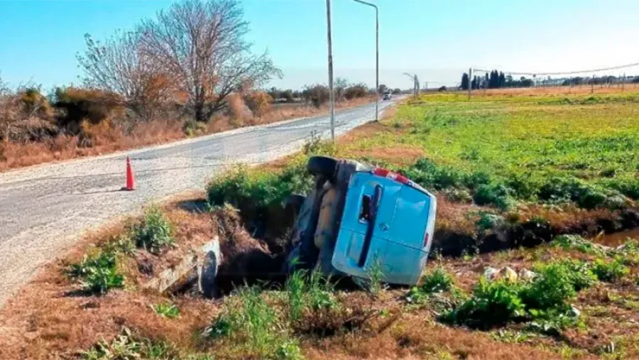 El incidente vial se habría producido por una mala maniobra que terminó con el rodado volcado al costado del camino de ingreso a la localidad.
