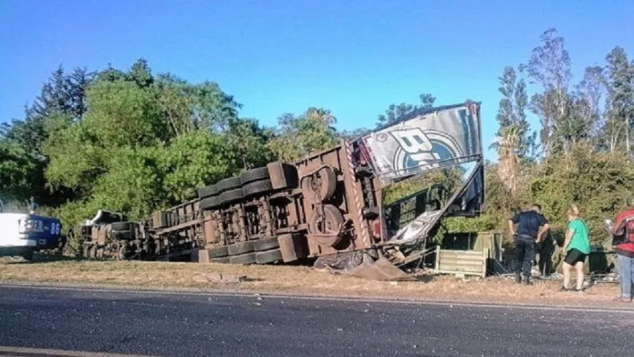 Fuentes policiales confirmaron a Uno que a las 6.45 el camión circulaba de norte a sur cuando en la curva antes llegar a los puentes sobre el arroyo Las Conchas el conductor perdió el control, se fue a la banquina y volcó sobre un zanjón.