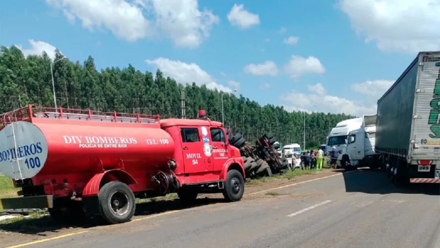 Quienes transitaban por las inmediaciones del kilómetro 250 de la Ruta Nacional 14, pasado el mediodía de este domingo, fueron testigos de una escena fuera de lo común. En el lugar, un camión Iveco Blanco, que transportaba madera, volcó y quedó con todas sus ruedas hacia arriba.