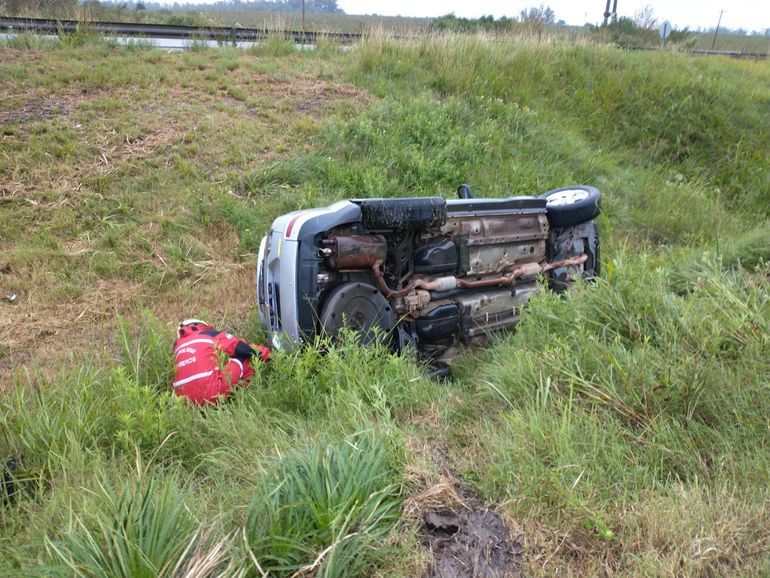 Una camioneta volcó en la Autovía 14 en medio de las intensas lluvias que se producen sobre Entre Ríos. El conductor del rodado habría realizado una maniobra para esquivar un espejo de agua lo que provocó que perdiera el control y ocasionara el vuelco. Afortunadamente no hubo personas lesionadas y no se obstaculizó la calzada.