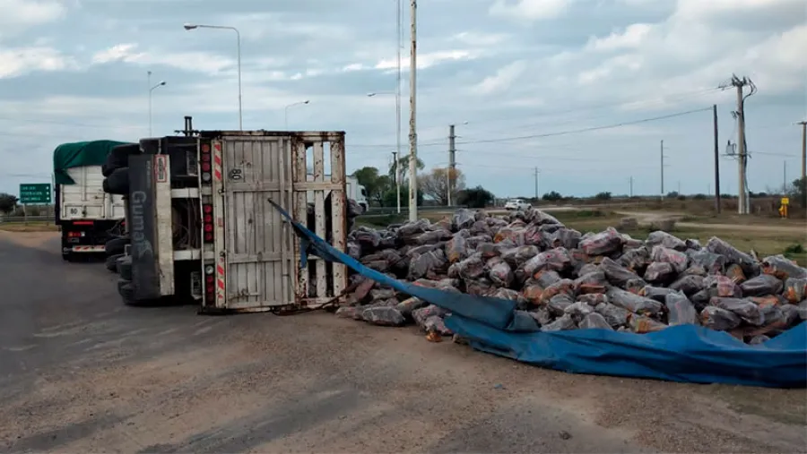 Un siniestro vial ocurrió durante las primeras horas de la tarde de este martes en la intersección de Ruta 2 y Ruta 127, en el departamento Federación. El hecho sucedió cuando el acoplado de un camión volcó y esparció su mercadería por la banquina.