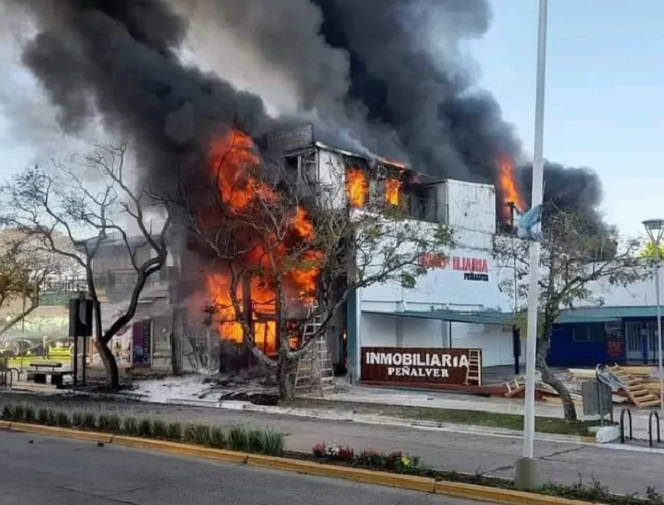 Como consecuencia del incendio, la estructura cedió y se derrumbó. Las pérdidas fueron totales. No se registraron lesionados.