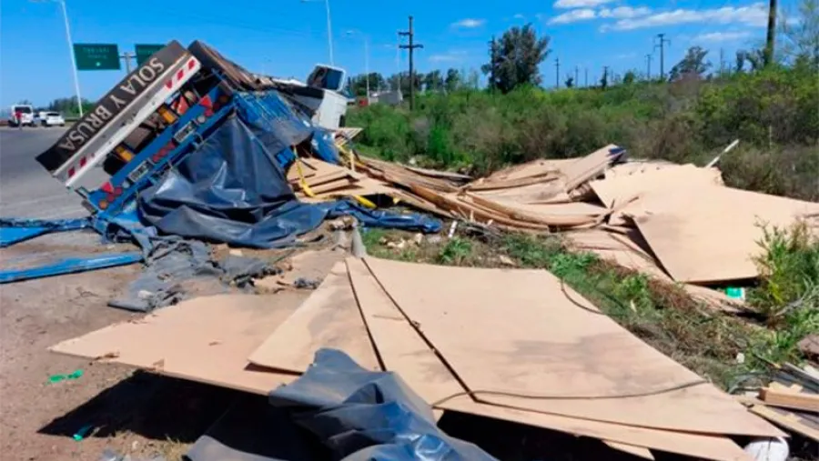 Dicho vehículo viajaba desde Misiones a Buenos Aires, y al ingresar a la rotonda de esta cuidad, perdió el control del rodado volcando sobre su costado izquierdo, lo que llevó a que perdiera la carga a un costado de la ruta.