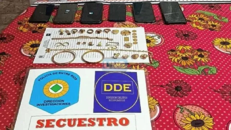 De esa manera, se ordenaron 12 allanamientos en varias provincias. En Paraná, se efectuó en calle Crausaz, lugar donde fue notificado de la detención un muchacho de 30 años. Además, se secuestraron varias alhajas de oro y seis teléfonos celulares.
