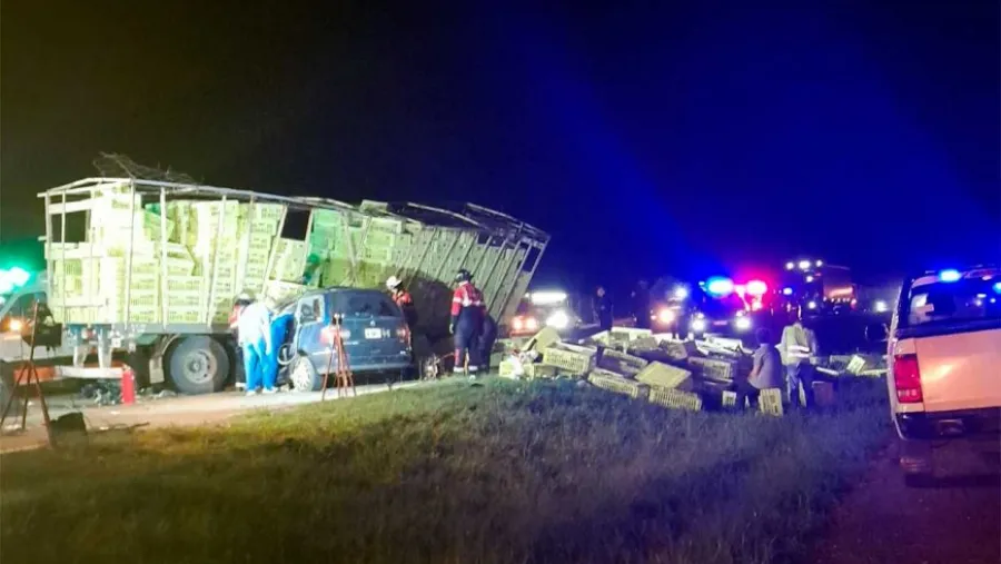 Según lo informado por la Policía, el siniestro ocurrió pasadas las 20. Se reventó el neumático delantero izquierdo de un camión Mercedes Benz con semi remolque, que estaba cargado con cajones vacíos de pollos. Como consecuencia, su conductor, un joven de 28 años oriundo de Concepción del Uruguay, perdió el control del vehículo, se cruzó al carril contrario e impactó con un auto que se movía en sentido norte – sur.