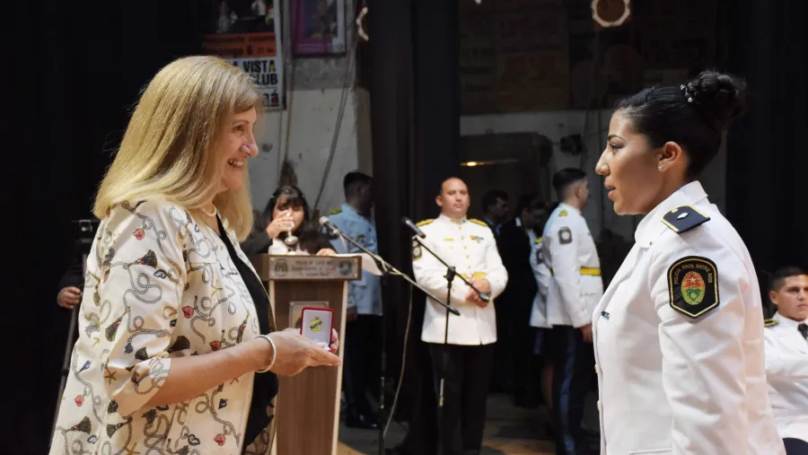 En esta línea, sostuvo: "Me siento muy orgullosa de nuestra Policía, es un ejemplo de conducta, de formación y de capacitación permanente porque no solamente capacitamos a los agentes y a los oficiales, sino también se capacita posterior al egreso y para hacer los ascensos, por lo tanto, siempre el progreso en la carrera tiene mucho que ver con el conocimiento y eso es elogiable".