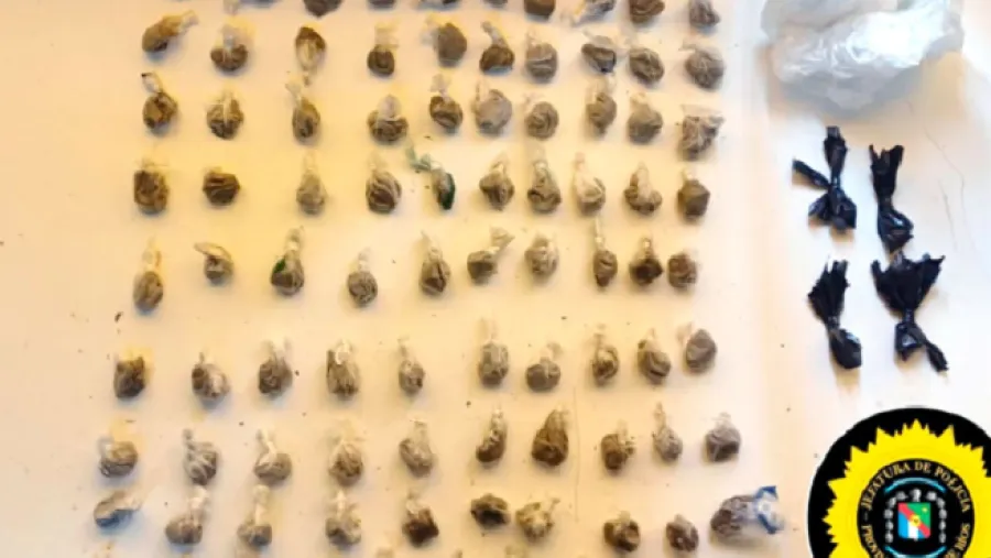 La sustancia, de color verde amarronado, fue objeto de un test de campo realizado por el equipo de Toxicología, el cual arrojó un resultado positivo para marihuana, con un peso total de 75,4 gramos.