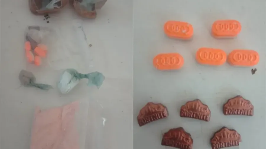 Según describieron, dos bolsas tenían sustancia vegetal compactada y luego se encontró una tercera bolsita tipo ziploc con una sustancia en polvo color rosada, otra bolsa tipo ziploc con 10 pastillas, cinco marca Audi color naranja y cinco marca Fornite color Bronce, además de dos envoltorios de nylon que contenían una sustancia cristalina y un envoltorio de nylon que tenía una sustancia en polvo color blanco.