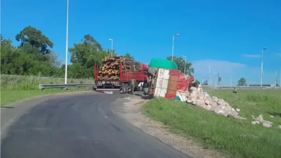 Un testigo del incidente vial filmó la situación y se puede observar incluso que un camión cargado con palos intenta sobrepasar al camión volcado, arrancándole un espejo retrovisor al no tener lugar para ambos camiones en la cinta asfáltica, que se encuentra en pésimas condiciones.