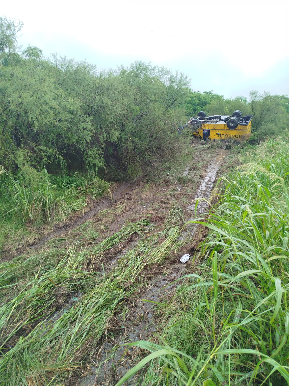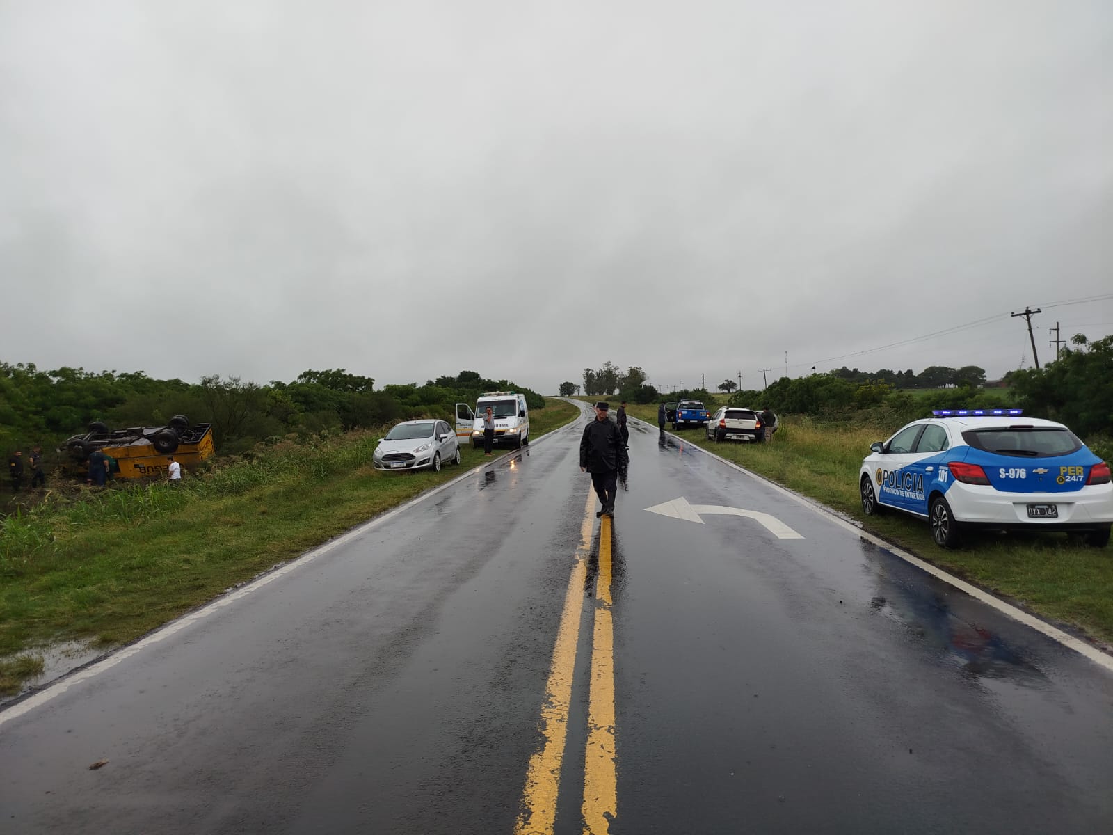 Por causas que se tratan de establecer el chofer del camión perdió el control del mismo y volcó sobre la banquina oeste de la ruta nacional 12, quedando el vehículo con sus ruedas hacia arriba. Los cuatro hombres accidentados resultaron con lesiones leves.