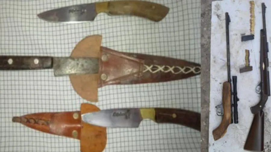 En el allanamiento dos armas tipo carabina, una de ellas con mira telescópica, ambas con cargador y cartuchería colocada, que fueron secuestradas.
