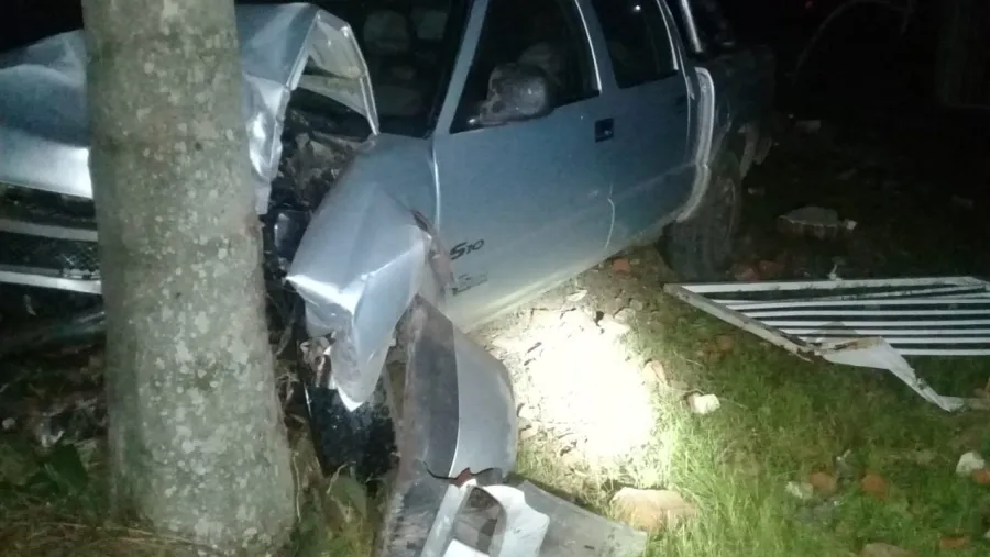 Este vehículo iba circulando desde María Grande hacia Santa Fe. Según el mismo conductor relató, al llegar a una curva otro vehículo que venía en sentido contrario lo encandiló, lo que provocó que se desviara hacia el costado de la ruta. Como resultado, colisionó contra un portón de una propiedad privada y luego su camioneta quedó incrustada contra una palmera ubicada dentro del predio.