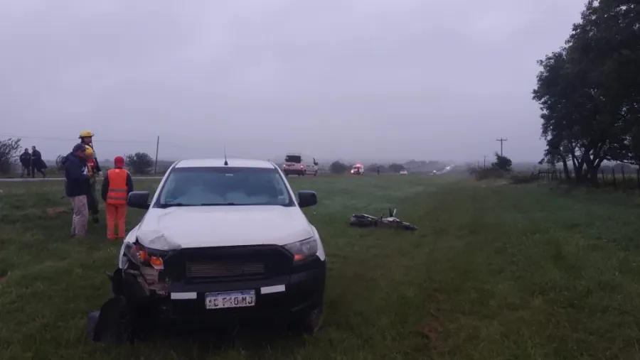 Un motociclista resultó lesionado tras un fuerte choque ocurrido en la ruta 12, a la altura de Aldea María Luisa, este martes de mañana, en medio de la intensa llovizna.