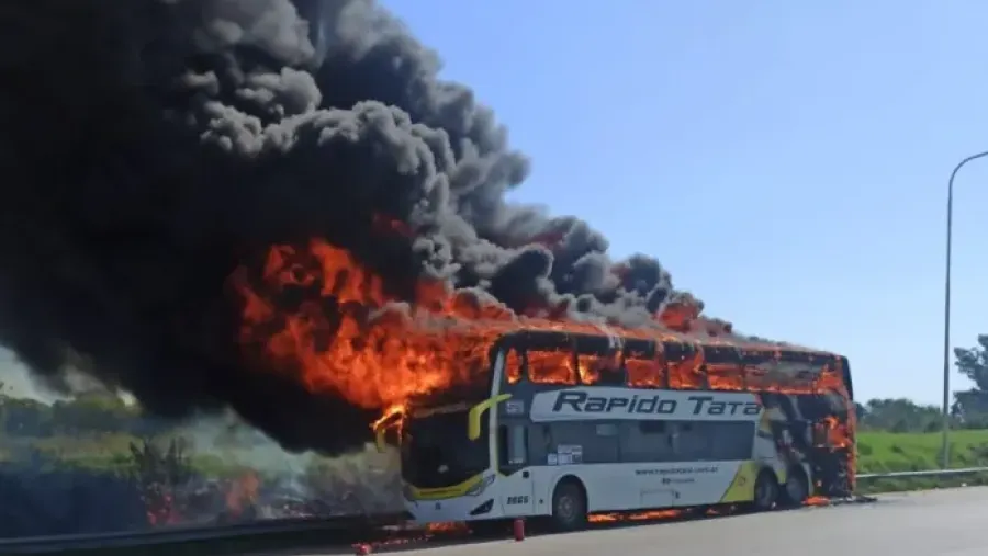 Afortunadamente quienes iban en la unidad, lograron bajar antes de que las llamas se propagaran afectando la totalidad del micro, observándose una densa columna de humo desde gran distancia.