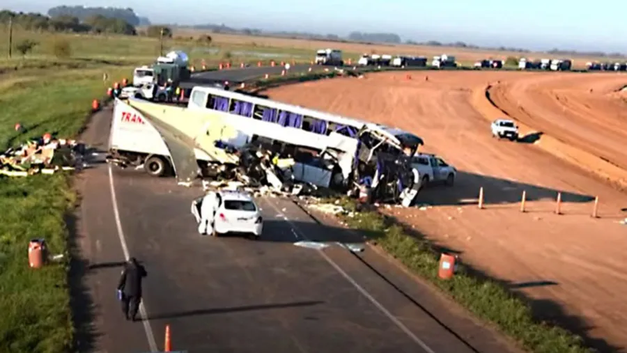 Entre los fallecidos se encuentran el conductor del camión y tres pasajeros del colectivo. Los cuerpos aún no fueron retirados, ya que el personal de Bomberos espera la autorización de la Fiscalía para avanzar con las pericias correspondientes.