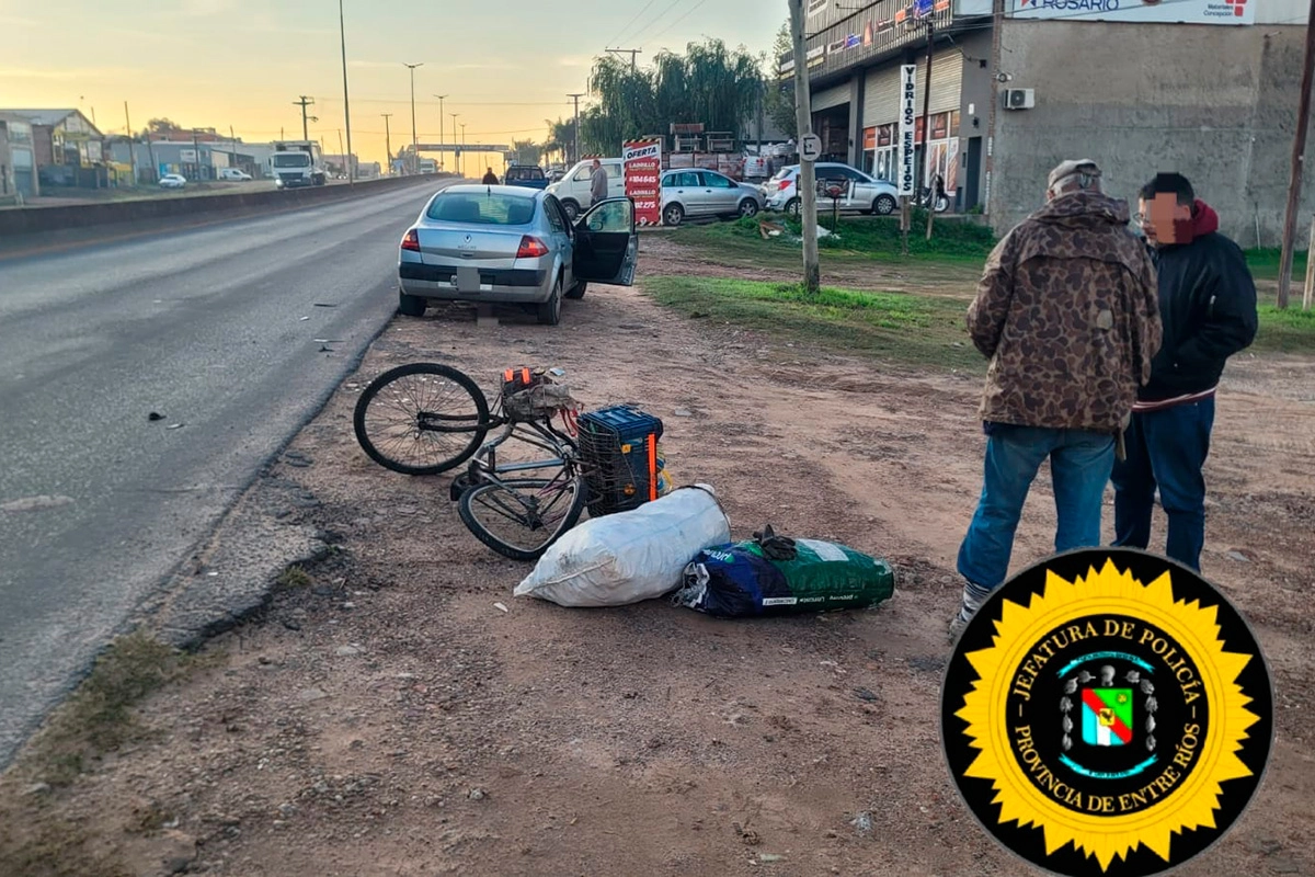 El vehículo impactó la rueda trasera de una bicicleta de paseo conducida por un hombre de 66 años, domiciliado en Ruta 14. Tras el golpe, el ciclista perdió el control y cayó sobre la cinta asfáltica.