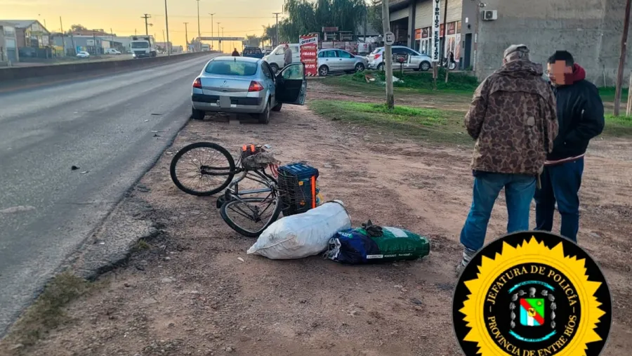 Un hombre de 66 años resultó con lesiones leves tras un choque entre un automóvil y una bicicleta; el siniestro vial ocurrió sobre Avenida J.J. Bruno, entre las calles 29 y 30 del Oeste, en Concepción del Uruguay.