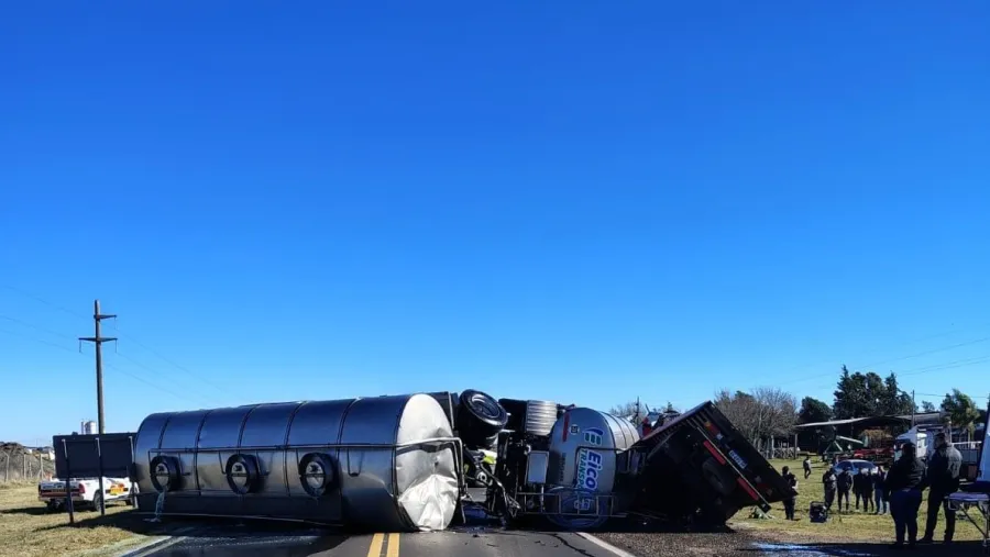 De acuerdo a las primeras informaciones, un camión cisterna cargado con miles de litros de leche volcó y chocó contra un transporte de auxilio, cuyo conductor quedó atrapado y perdió la vida.