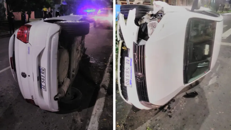 Se informó desde la Policía a ANÁLISIS que el siniestro vial tuvo lugar minutos antes de las 4.30 de la madrugada, cuando el auto VW Gol sufrió la pinchadura de una rueda, por lo que su conductor perdió el control, impactó contra el parterre (cantero central) de Racedo y volcó.