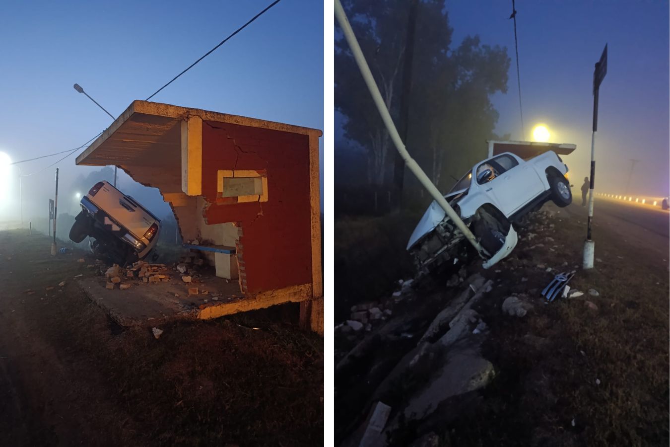 Allí se produjo el despiste y posterior colisión de una camioneta Toyota Hilux contra una garita de material y un poste de luminaria pública. Se registraron solamente daños materiales, sin lesionados, confirmó la Policía.