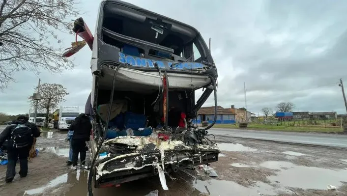 Según los peritajes preliminares, el camión habría colisionado contra la parte trasera del colectivo, que terminó desplazado más de 500 metros fuera de la calzada. Se investiga si el chofer del camión se durmió al volante.