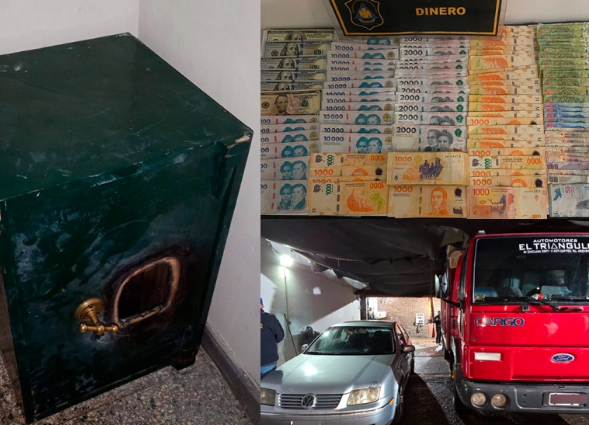 Entonces, trascendió que las cajas fuertes robadas contenían alrededor de 50 millones de pesos en efectivo, cheques, además de 800 mil dólares, 10 mil reales y aproximadamente 5 mil euros.