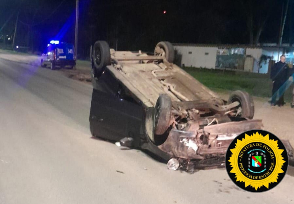 La Policía fue alertada alrededor de las 6:10 que se había producido un vuelco en el ingreso a Concepción del Uruguay. El conductor sufrió lesiones menores y aparentemente tendría alcoholemia positiva.