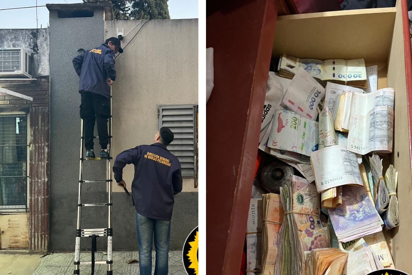 Sobre los elementos secuestrados, se detalló: envoltorios de cocaína y marihuana, 800 dólares, 70.000 pesos en billetes apócrifos, 1.775.750 pesos, una balanza con restos de cocaína, cámaras de seguridad, recortes varios y precintos, un arma de fuego, cartuchos calibre 9 milímetros, celulares, entre otros.