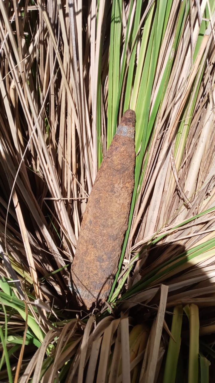 El hallazgo ocurrió en el establecimiento “Laguna Blanca”, ubicado en el kilómetro 3 de la avenida Circunvalación, donde un hombre de 36 años encontró el artefacto en un pajonal, cerca de una laguna. El proyectil, que presentaba un avanzado estado de corrosión y una espoleta visible, no había sido manipulado.