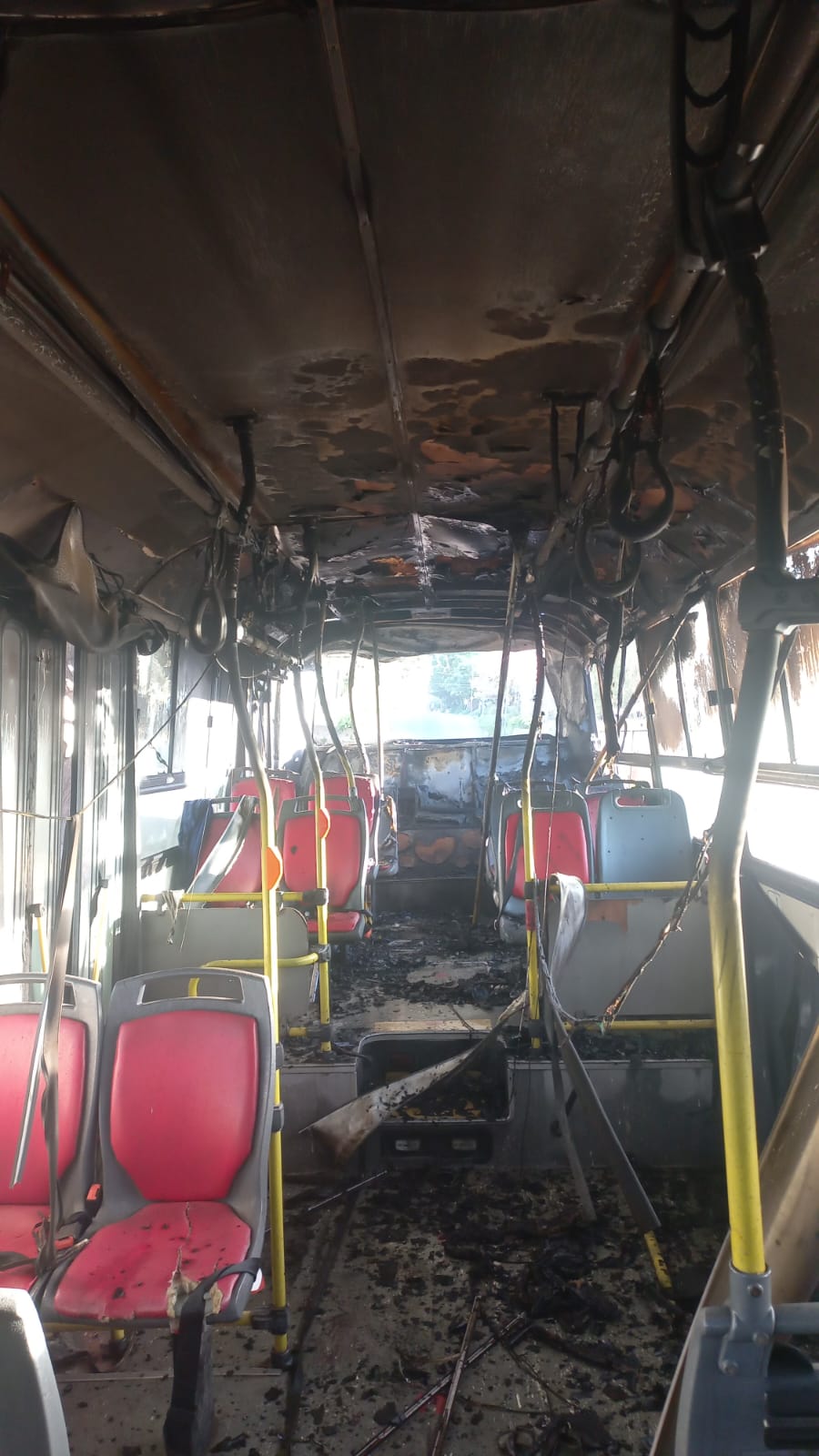 Ante los pedidos de auxilio, llegaron al lugar móviles policiales y de los Bomberos Zapadores, quienes realizaron las labores de extinción del proceso combustivo que afectaba en la parte trasera del colectivo, marca Agrale MT 12.