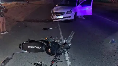 Motociclistas chocaron contra un auto en Ruta 12: según testigos iban zigzagueando y cruzaron en rojo
