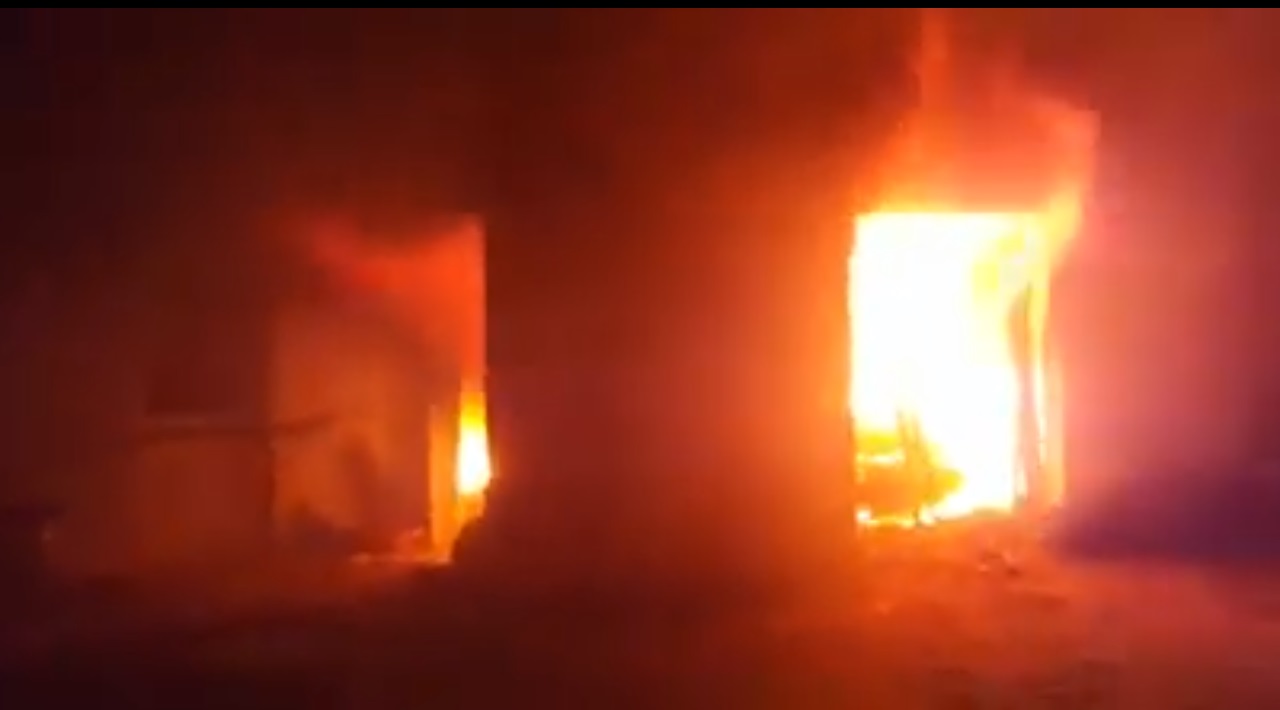 Trabajan el lugar funcionarios de la Departamental de Policía para tratar de determinar cómo se originó el foco ígneo.