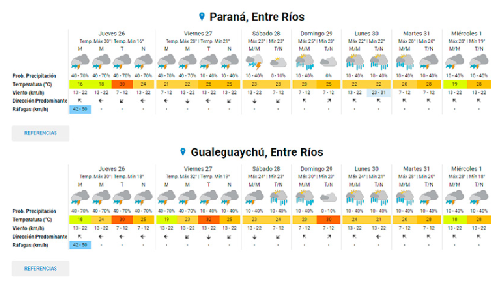 A partir de hoy y hasta el sábado por la mañana se anuncian tormentas en Paraná, luego podría darse una leve mejoría, pero seguiría la inestabilidad y la posibilidad de lluvias siempre latente. Según las previsiones a más largo plazo, recién después de Año Nuevo se produciría una mejoría más duradera en las condiciones meteorológicas.