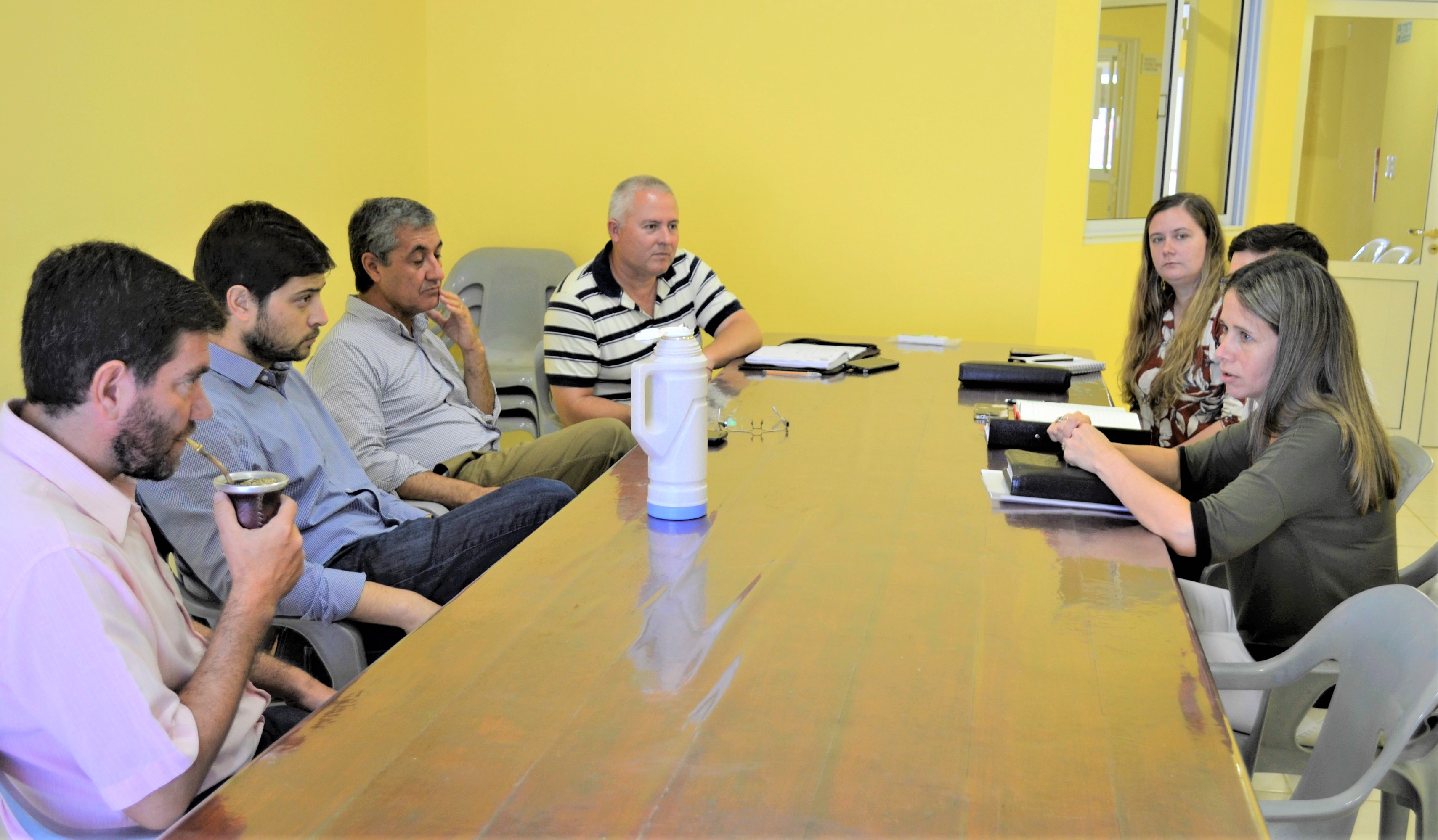 La coordinadora de Producción de Nogoyá, Stella Maris Aquino, junto con los concejales Juan Centurión y Ayelén Correa, fue recibida por el intendente Sergio Martínez; el secretario de Gobierno Carlos Möhlinger, el presidente del Ente de Promoción de la Producción y el Empleo (EPPE), Gastón Bourlot y el encargado de promoción de la Economía Social Juan Villaverde para ser informados sobre la normativa y características del funcionamiento del Parque Industrial y de Servicios de Urdinarrain.