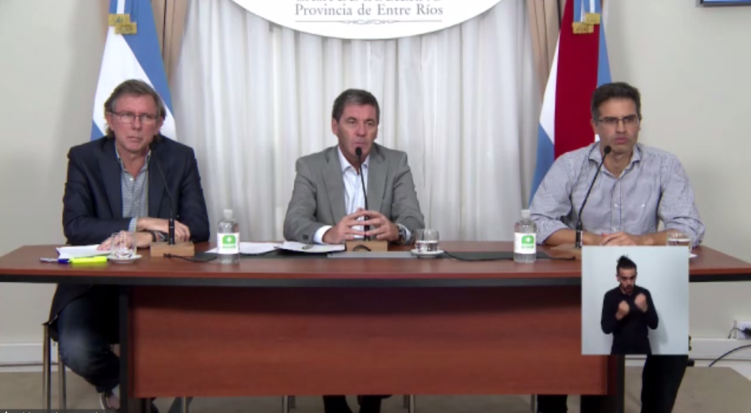 El ministro de Economía Hugo Ballay, el titular del área de Epidemiología del Ministerio de Salud Diego Garcilazo y el ministro de la Producción Juan José Bahillo encabezaron la conferencia de prensa que realiza habitualmente el gobierno provincial en el marco del aislamiento solidario y obligatorio dispuesto por el gobierno nacional.