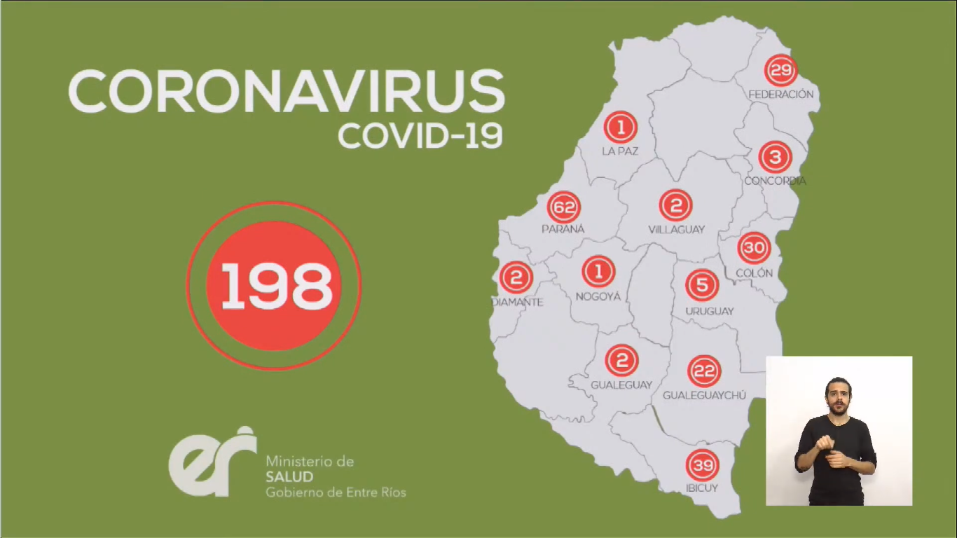 El director de Epidemiología de la provincia, Diego Garcilazo, aseguró que "existe la posibilidad de que haya circulación comunitaria en Paraná" y que esto depende de la posibilidad de determinar los nexos epidemiológicos. "Al ser una ciudad tan grande el riesgo de transmisión comunitaria en Paraná sea mayor a otras ciudades" dijo Garcilazo en comparación a las otras localidades con circulación por conglomerado.