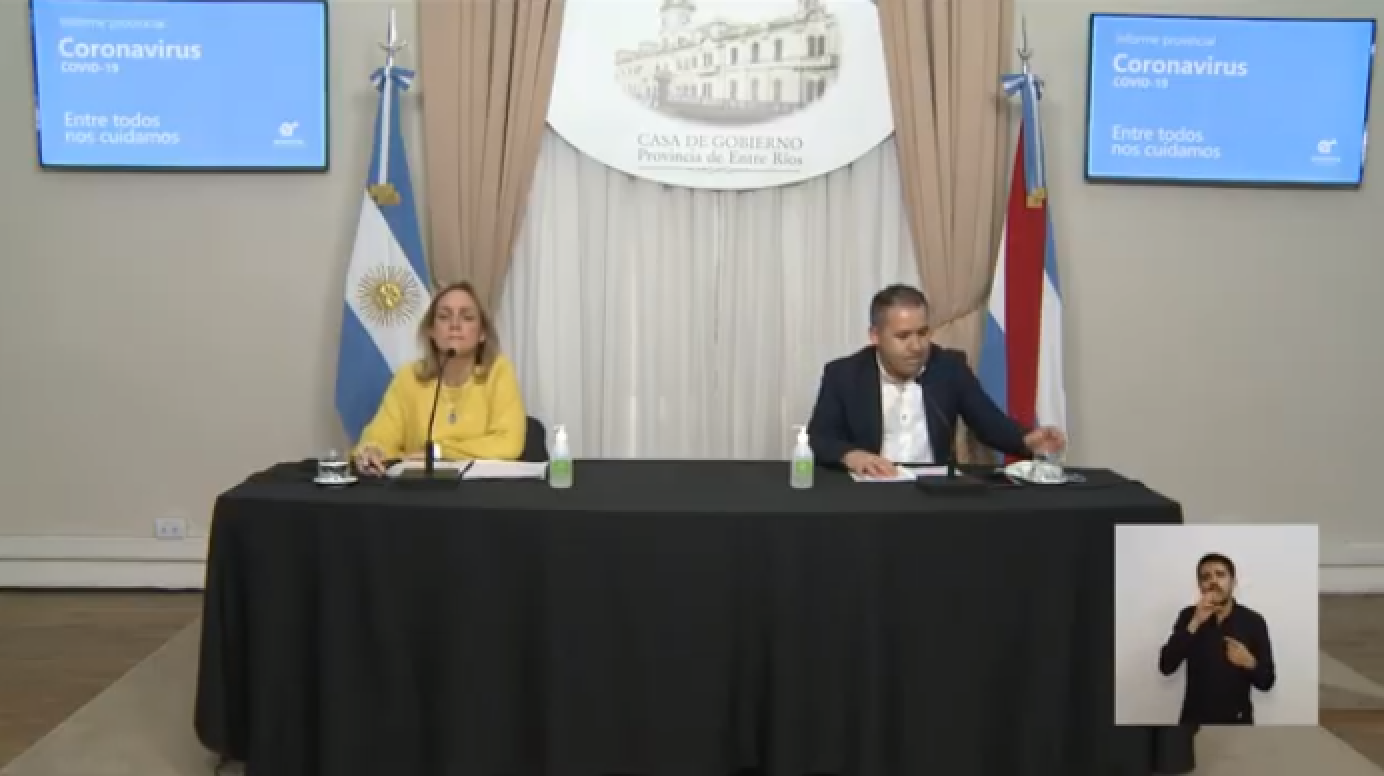 La secretaria de Salud Carina Reh y el director General de Emergencias Sanitarias del Ministerio de Salud, Lucas Kecher dieron la conferencia de prensa este viernes para Entre Ríos.