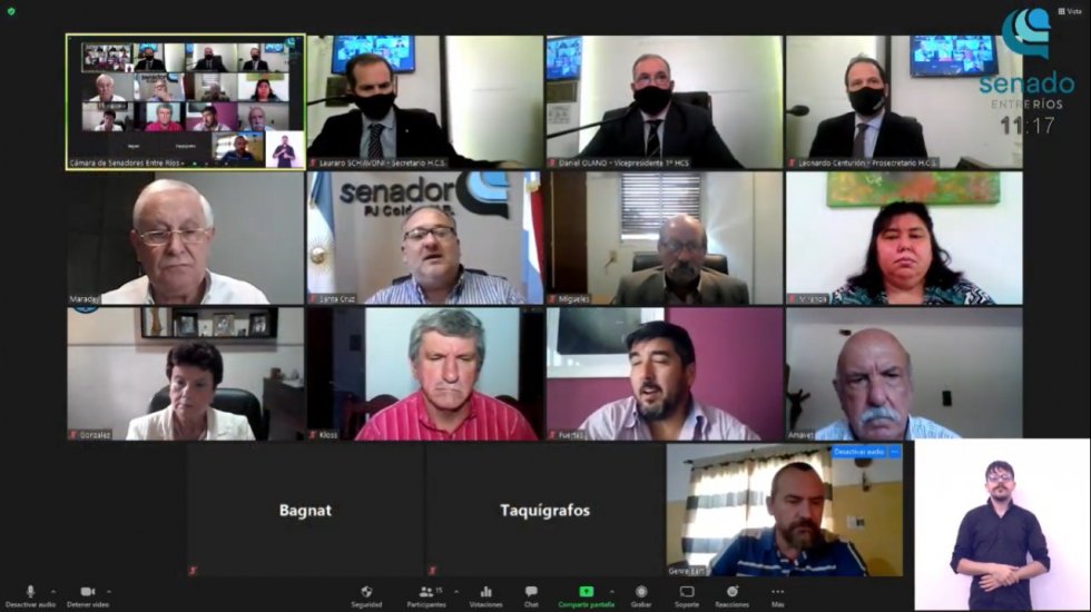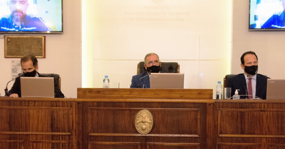 El debate fue presidido desde el recinto por el vicepresidente 1º del cuerpo, Daniel Olano (Frente Creer-Islas del Ibicuy), quien estuvo acompañado por los presidentes de las dos bancadas legislativas, Armando Gay (Frente Creer-Concordia) y Francisco Morchio (Cambiemos-Gualeguay), además de Marcelo Berhet (Frente Creer-San Salvador), Rubén Dal Molín (Cambiemos-Federación), Flavia Maidana (Frente Creer-Nogoyá) y Claudia Gieco (Frente Creer-Diamante); en tanto que el resto de los legisladores asistieron a la sesión mediante videoconferencia.