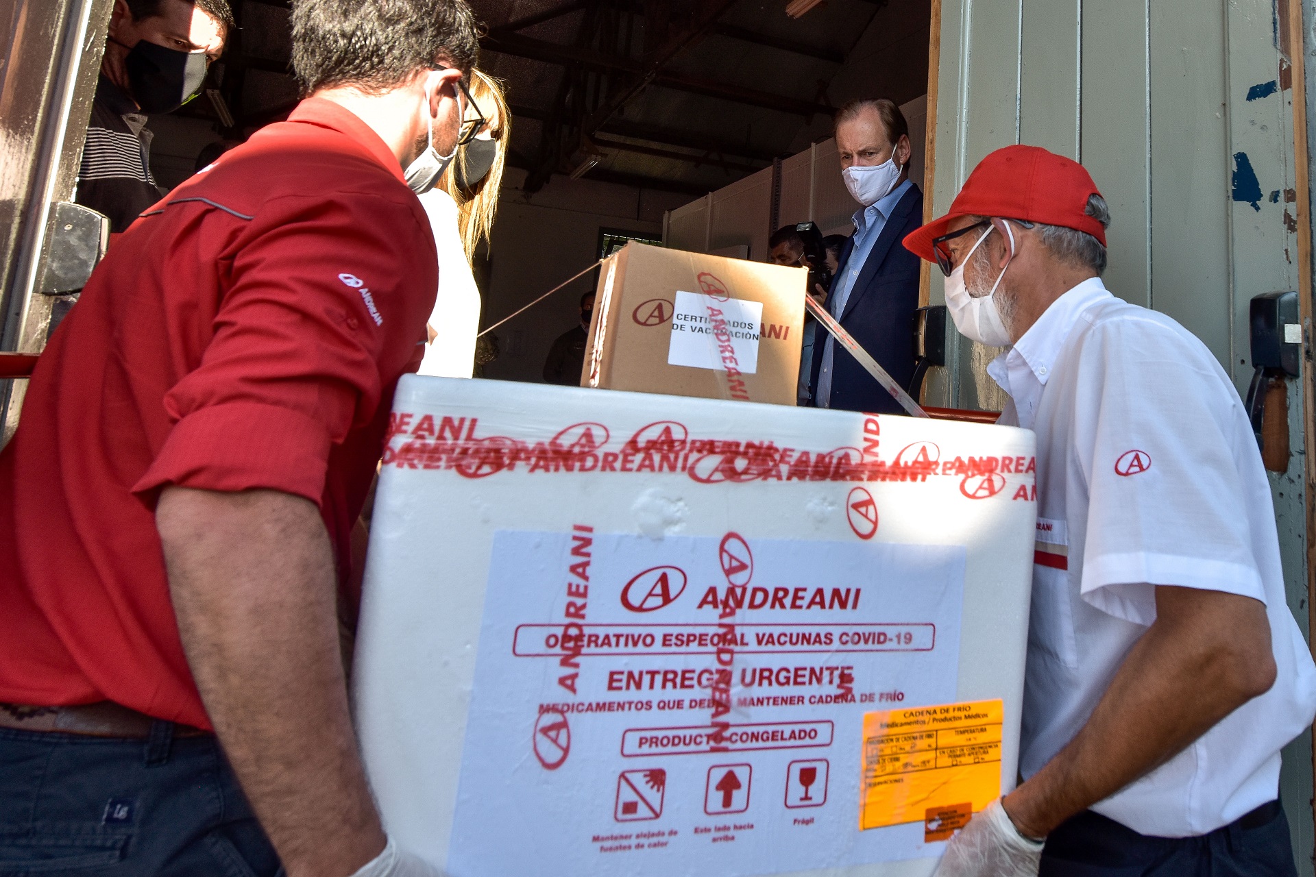 "Las vacunas se van a empezar aplicar este martes a partir de las 9 en forma simultánea en Paraná, Concordia, Concepción del Uruguay y Gualeguaychú", dijo el mandatario y luego agradeció a la ministra de Salud y a todo el personal de esa área "por la logística y la tarea puesta de manifiesto para poder contar hoy con un elemento que es vital para derrotar la pandemia. Y por otro lado también quiero agradecerle a la Brigada Paraná de la Fuerza Aérea Argentina por el hecho de haber puesto a disposición la cámara de frío que se necesita para mantener las vacunas y luego distribuirlas al resto de la provincia".