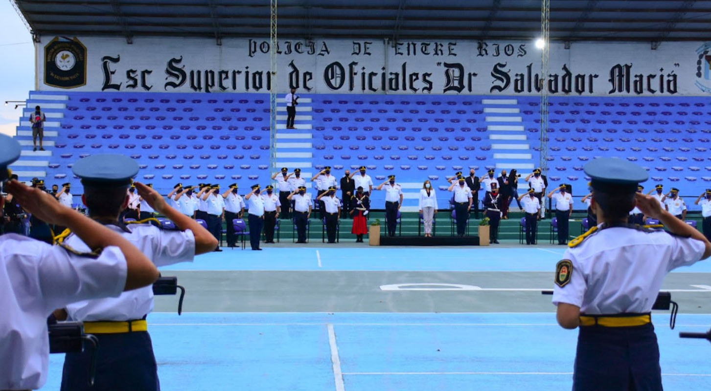 La ministra de Gobierno y Justicia, Rosario Romero, presidió el acto en el que el Jefe de Policía, Gustavo Maslein, puso en funciones a los nuevos directores y subdirectores de la Plana Mayor de la Policía de Entre Ríos.