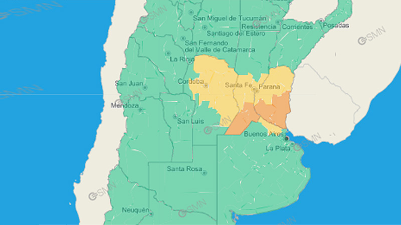 En el caso del sur y parte del centro de nuestra provincia, el Servicio Meteorológico Nacional elevó el nivel de alerta a “naranja”.