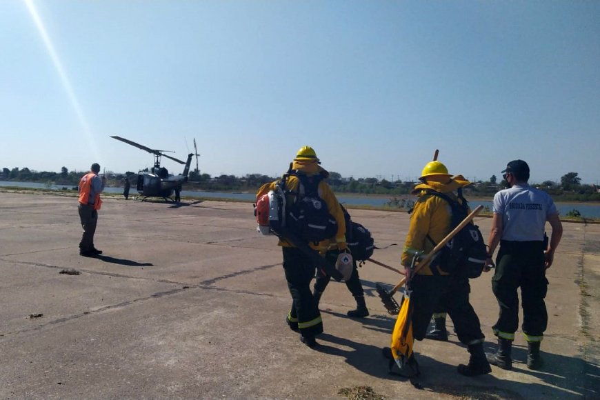 Intervienen personal técnico y operativo de Protección Civil de Santa Fe, personal del Ministerio de Salud de Santa Fe, brigadistas forestales de la Federación Santafesina de Asociaciones de Bomberos Voluntarios y personal técnico del Plan de Manejo del Fuego de Entre Ríos. Se cuenta con medios fluviales y aéreos, con helicóptero y un avión hidrante.