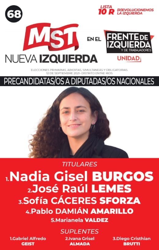 La dirigente de izquierda Nadia Burgos está al frente de la nómina denominada (R)Evolucionemos la izquierda, y la integran también José Raúl Lemes, Sofía Cáceres Sforza, Pablo Amarillo y Marianela Valdez.