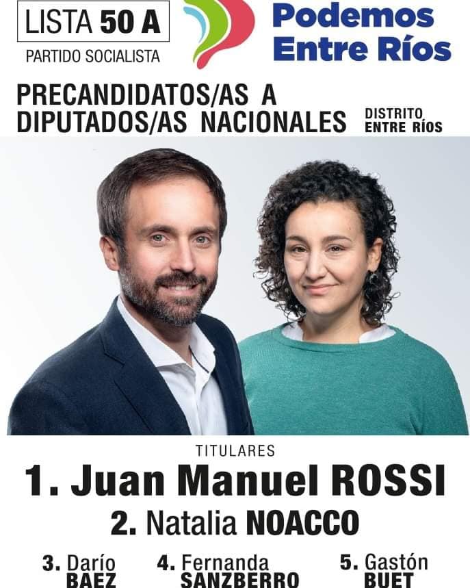 Por su parte, Rossi, representa a la nómina “Podemos Entre Ríos”, que la completan Natalia Noacco, Darío Báez, Fernanda Sanzberro y Gastón Buet.