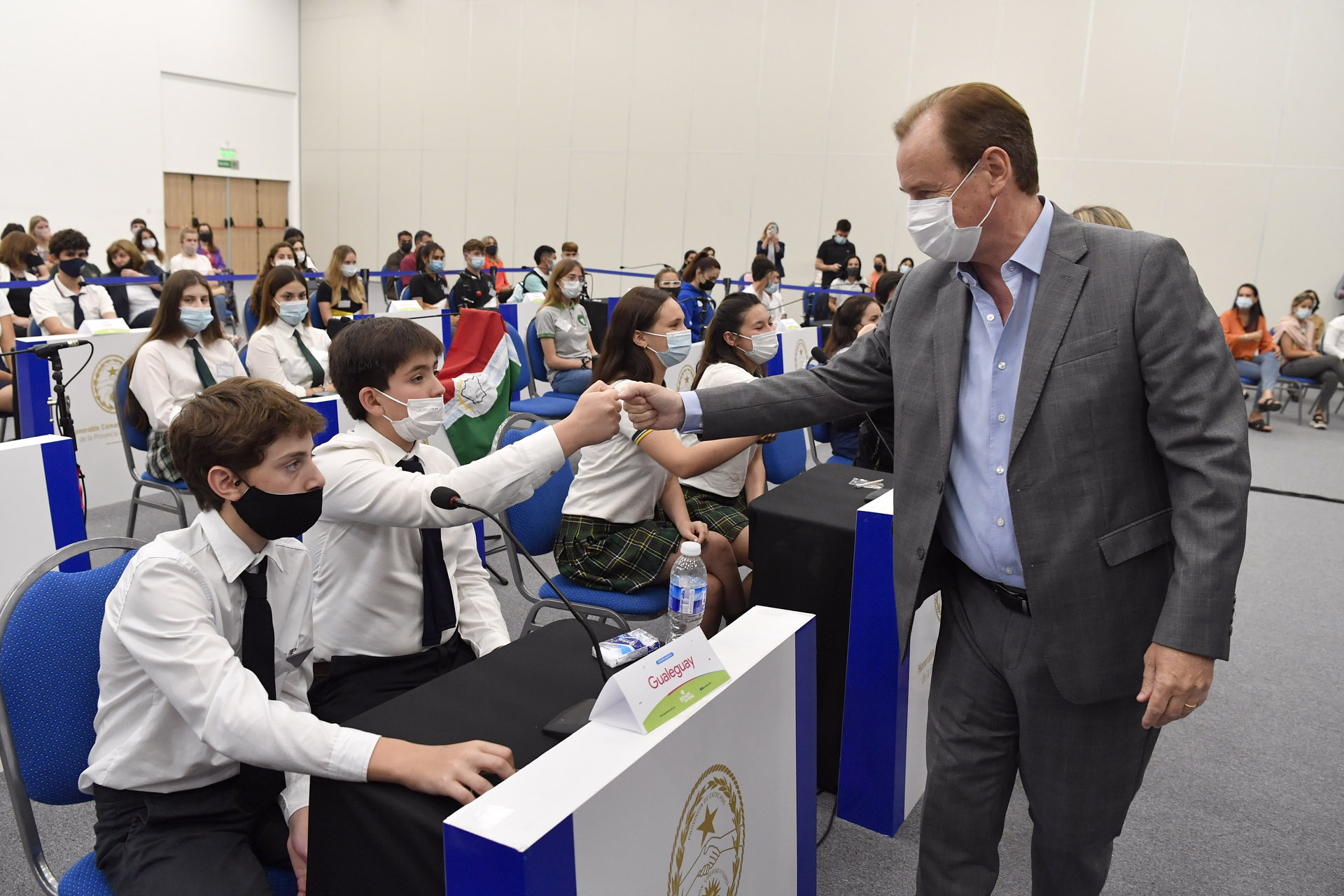 Finalmente, Bordet destacó: "La democracia siempre va a ser mucho más perfecta cuanto más se participe y la forma de cambiar las cosas es con la democracia. Cuando algo no gusta están las herramientas para hacerlo. Quizás la más contunden y efectiva sea el voto, pero hay otras que cotidianamente se puede llevar adelante y practicar para mejorar nuestro sistema y transformar la realidad. Por eso mis felicitaciones a todos y cada uno de ustedes, por los proyectos que elaboraron y presentaron. Para nosotros es un aporte importante porque nos hace mejorar y escuchar lo que desde cada departamento nos traen. Y también felicito a todos los docentes que han acompañado estos proyectos y a sus familiares por el apoyo prestado para que puedan estar acá en esta instancia".