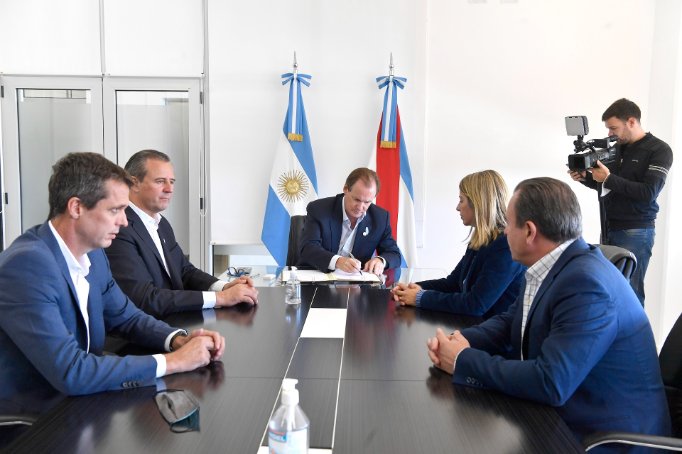 El gobernador Gustavo Bordet firmó el convenio para iniciar la obra de una planta de tratamiento para dotar del servicio de cloacas al complejo de 500 viviendas de Paraná, con el intendente de Paraná, Adán Bahl; el titular del Enohsa, Enrique Cresto, y el presidente del Instituto Autárquico Provincial de la Vivienda (IAPV), Marcelo Bisogni. Los acompaño la vicegobernadora Laura Stratta.